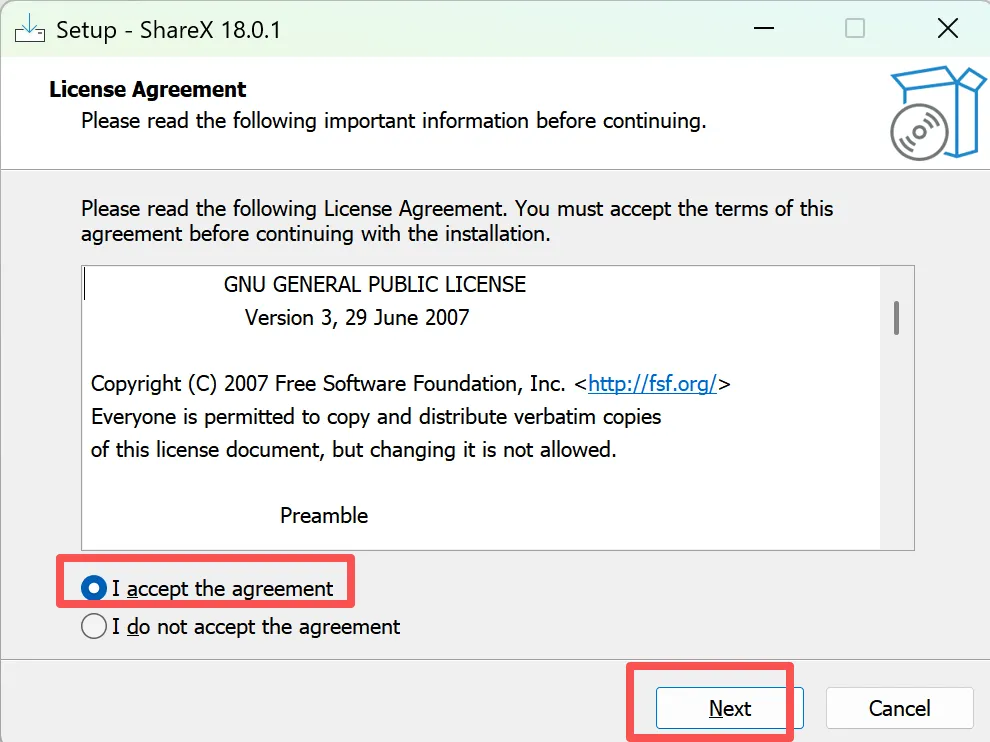 1、找到下载好的ShareX文件夹,双击ShareX setup.exe,进入license 界面,选择第一项,点击Next