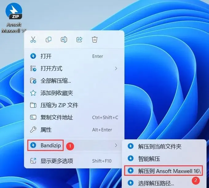 1、下载Ansoft Maxwell 16软件安装包到电脑上,右键选择【解压到Ansoft Maxwell 16\】