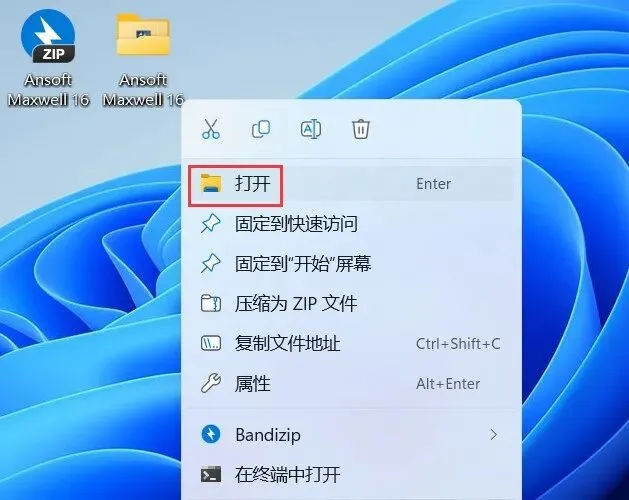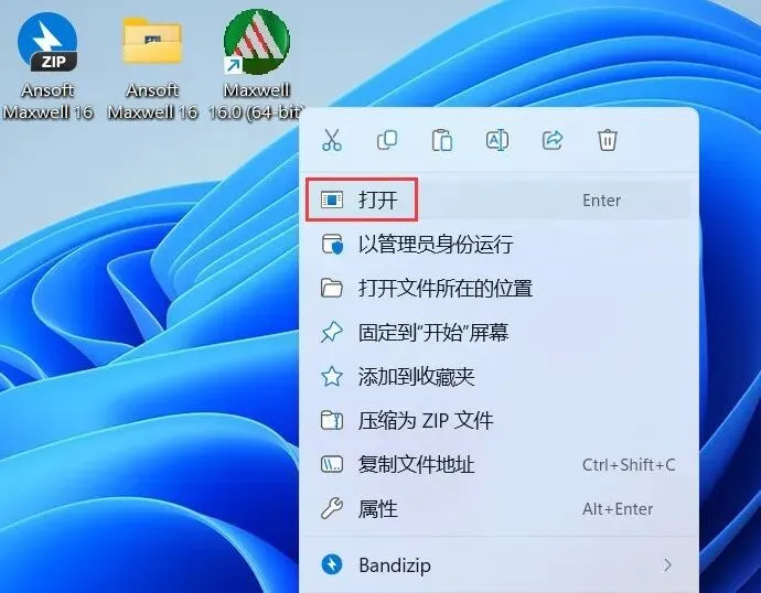 28、回到桌面,右键桌面上的【Ansoft Maxwell 16软件图标】,点击【打开】