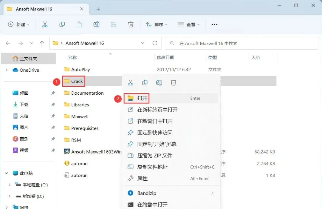 22、回到Ansoft Maxwell 16文件夹,找到【Crack】文件夹,右键【打开】它