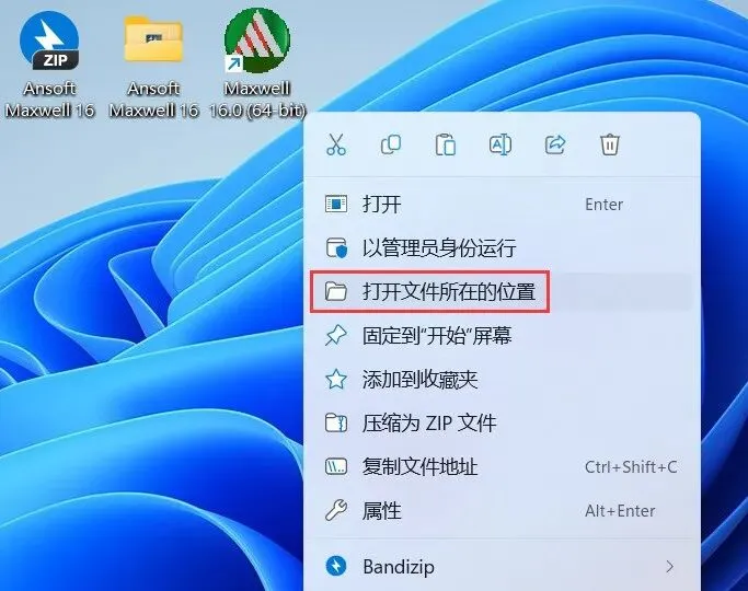 24、回到桌面,右键桌面上的【Ansoft Maxwell 16软件图标】,点击【打开文件所在的位置】