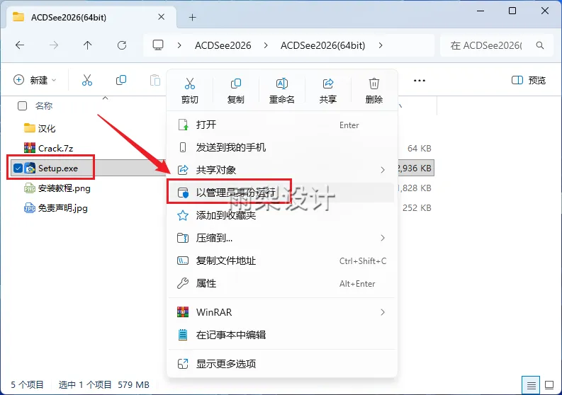 2.右键【Setup.exe】选择【以管理员身份运行】