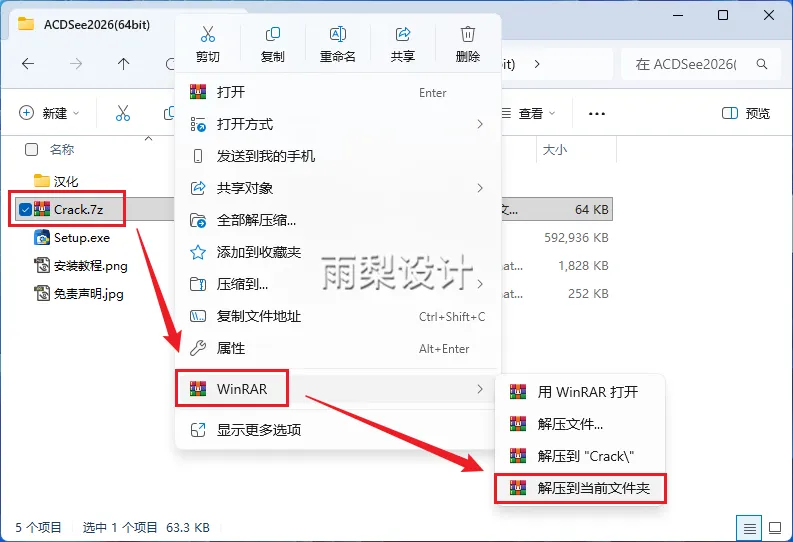 7.返回安装包;右键【Crack】选择【解压到当前文件夹】
