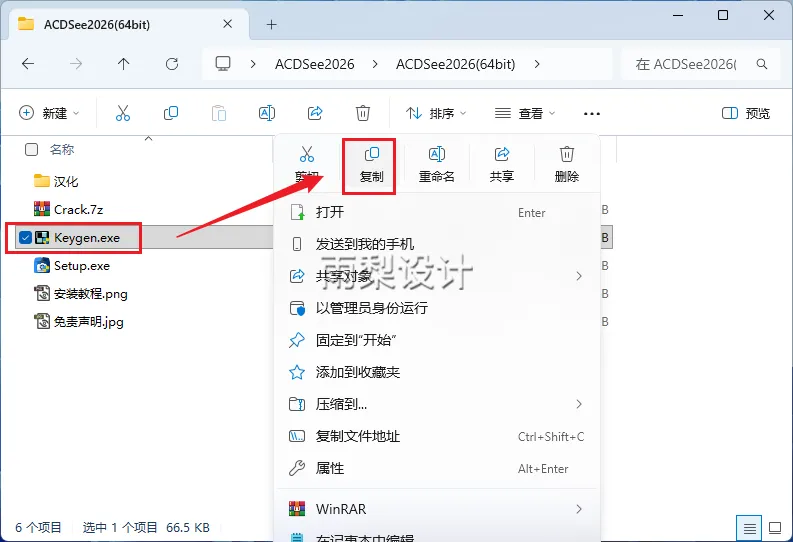 11.右键【Kegen.exe】选择【以管理员身份运行】