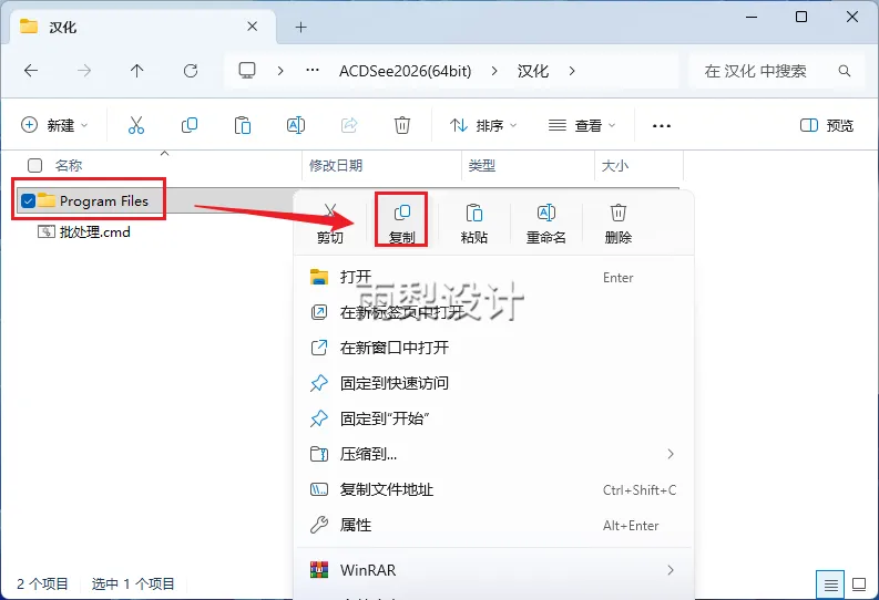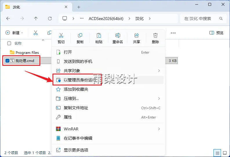 14.返回安装包打开【汉化】文件夹;双击【批处理.cmd】运行完会自动关闭