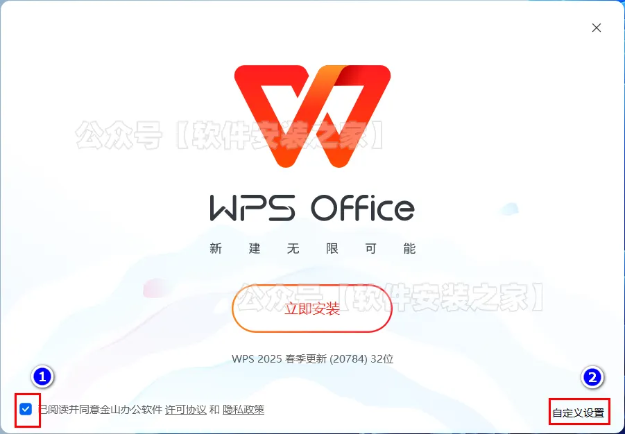 3.勾选【已阅读并同意……】,点击【自定义设置】。