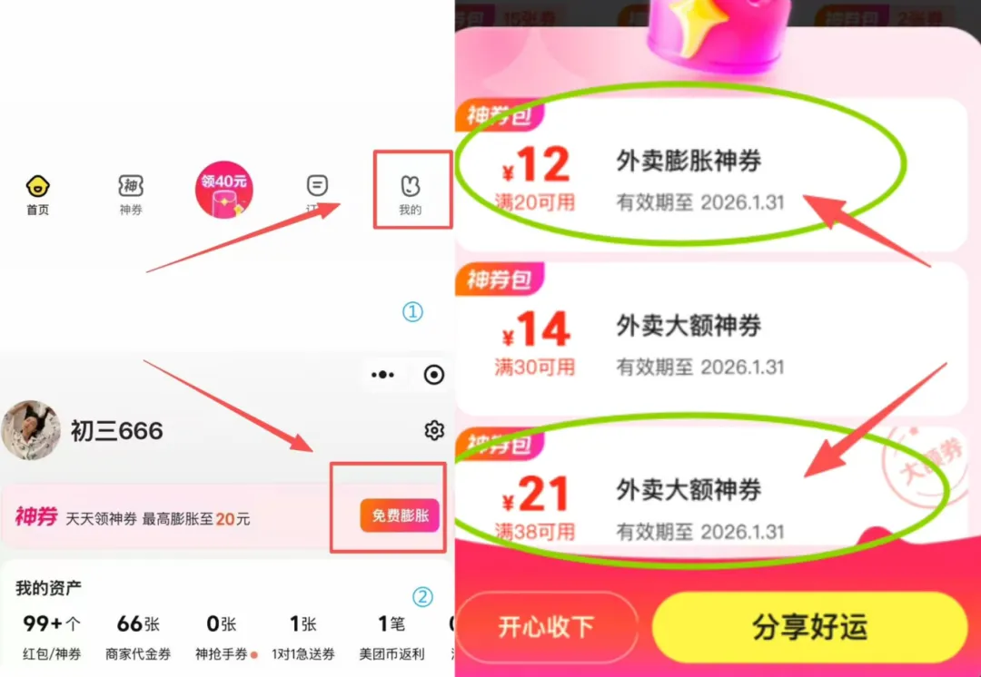 速度冲!美团膨胀地址玩法又复活了!无需下载软件 黑号也可以膨出20减12以及38减20左右大额券!