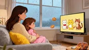 空气里有饼干香,电视里放着轻轻的音乐,