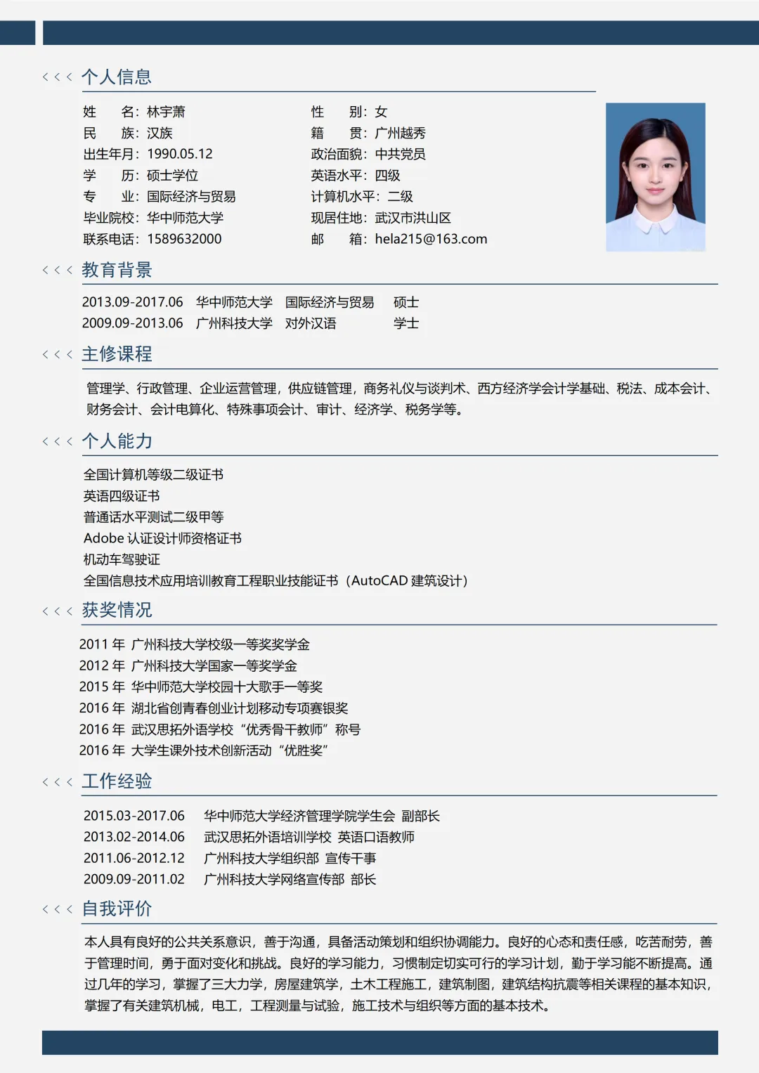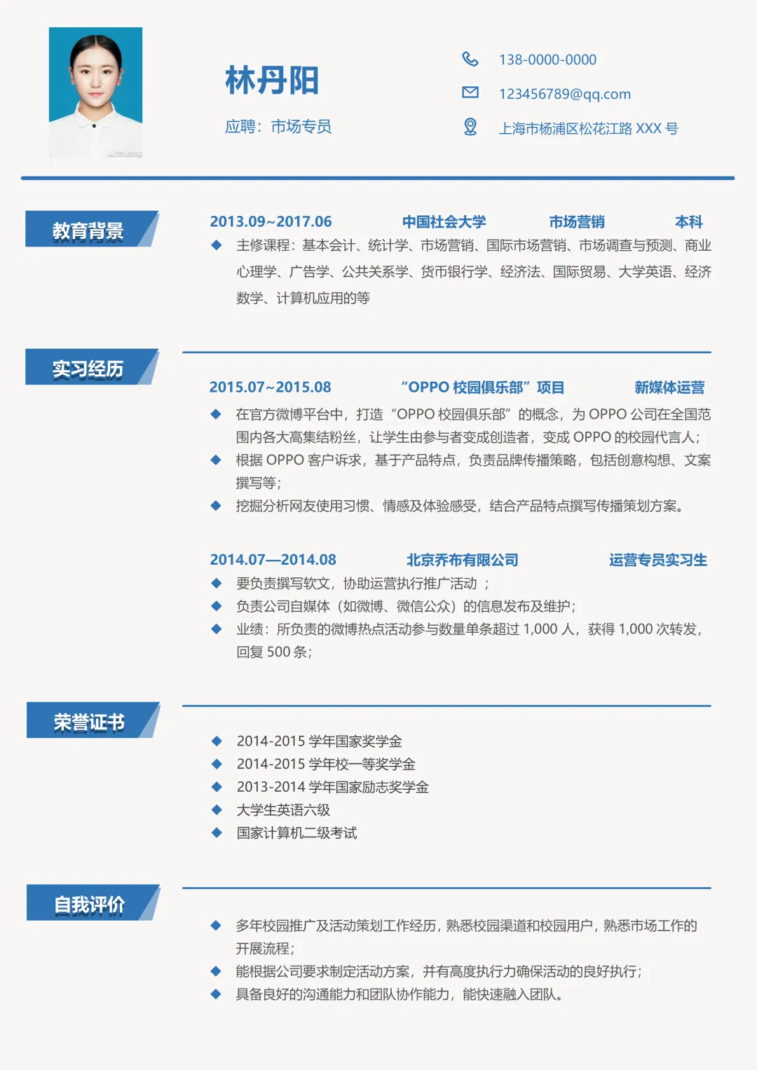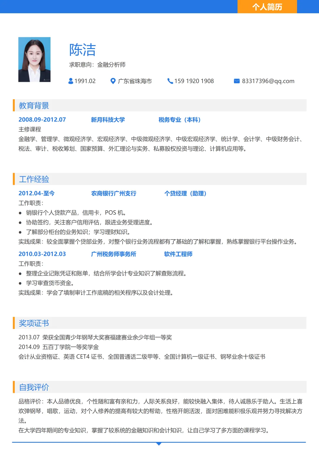 个人简历模板 免费下载【word 电子版】