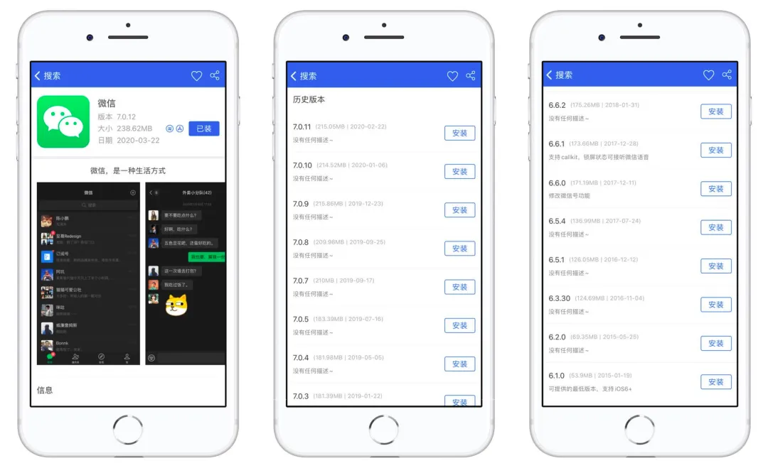 打开手机爱思极速版,搜索你需要的APP,进入页面之后下拉可以看到历史版本四个字,里面就是爱思助手的旧版,点击即可安装你需要的APP,旧版软件很多都没说明,而且版本不全面,但没有特殊需求还是够用了,看后续优化吧。爱思助手也支持7天续签功能,也可以尝试一下。