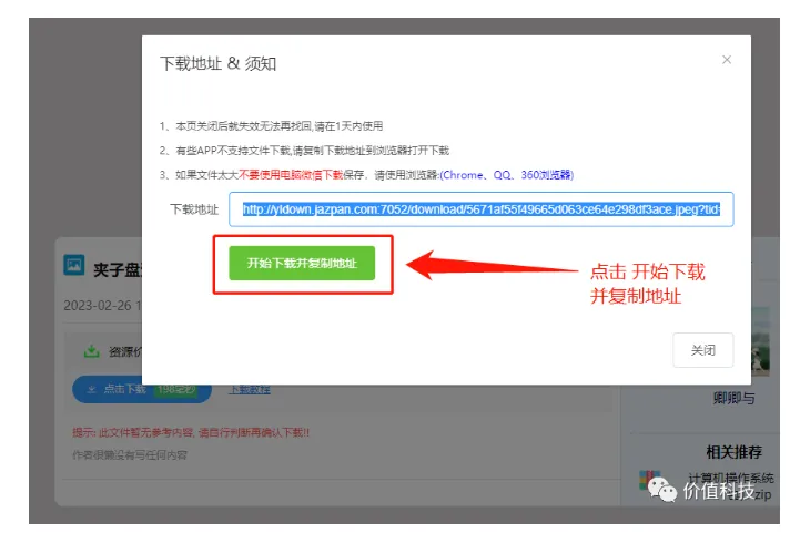 第四步:以下这步骤最关健,点开红框中的复制按扭后,最好先粘贴到公众号微信传输助手备份,(备份好后再把这链接粘贴到桌面上的任一浏览器上,看第五步),万一你下载不了,可以有备份的,可以咨询客服,后可以再次下载