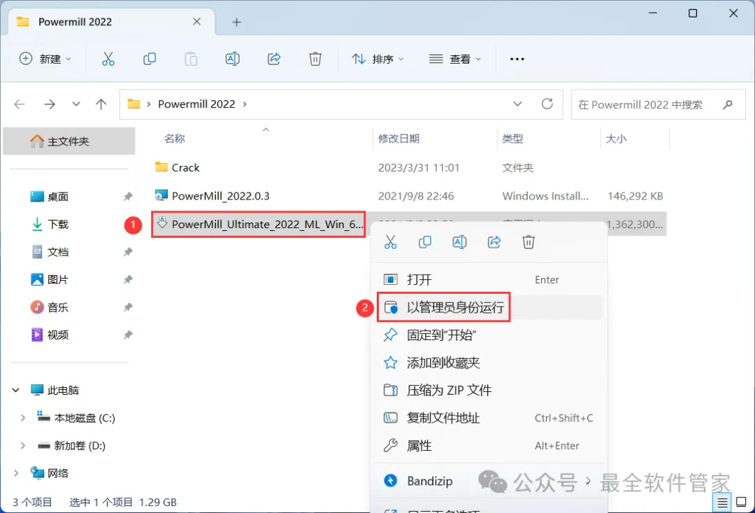 1、下载PowerMill 2022软件安装包到电脑上,右键选择【解压到PowerMill 2022\】