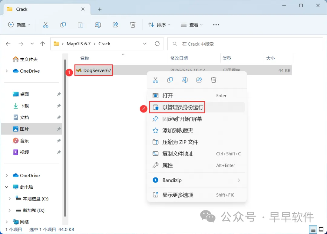 4、找到【DogServer67】应用程序,右键选择【以管理员身份运行】它