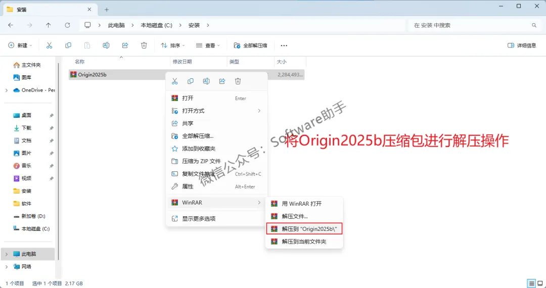 1.鼠标右击【Origin2025b】压缩包,将它解压