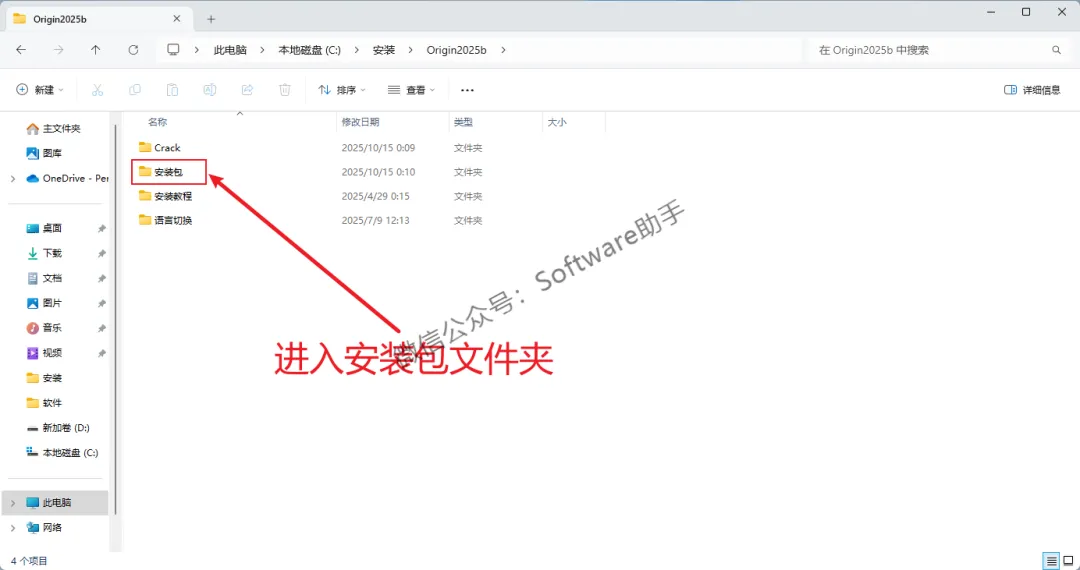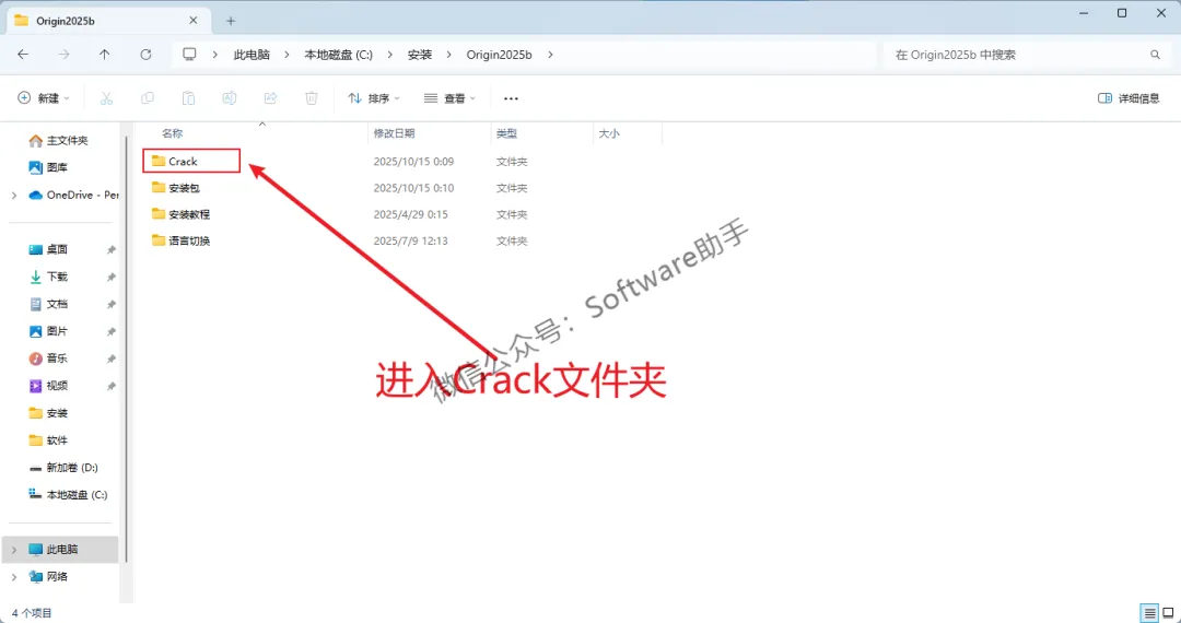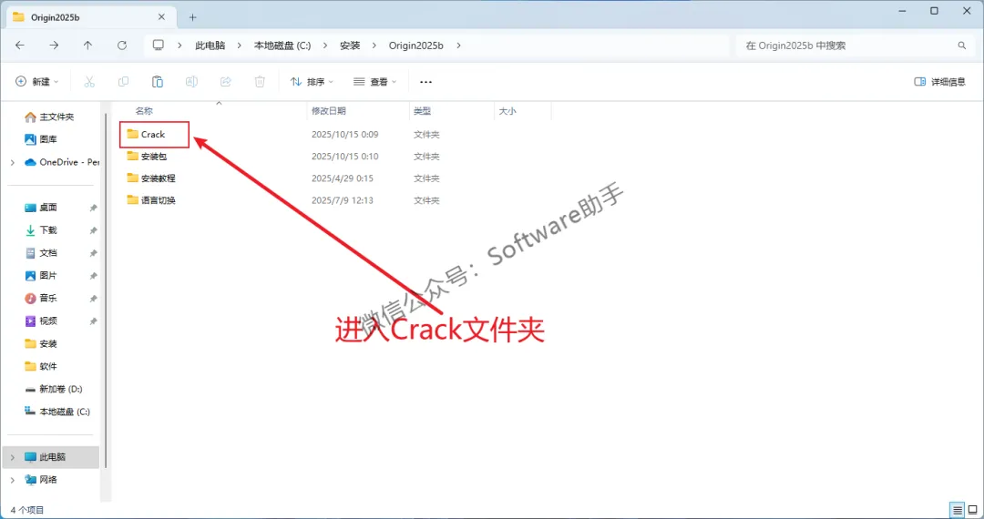 24.返回到【Origin 2025】文件夹,再进入【Crack】文件夹
