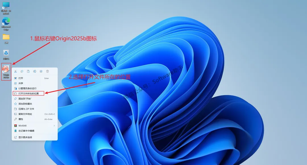 26.鼠标右键【Origin 2025b】图标,选择【打开文件所在的位置】
