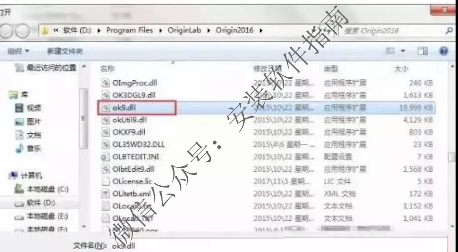 11、将文件选项改为“AllFiles*.*”,浏览找到安装目录内的文件“ok9.dll”(64位系统为“ok9_64.dll”),点“打开”即可破解。