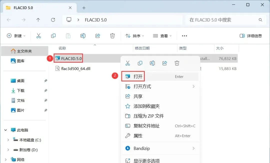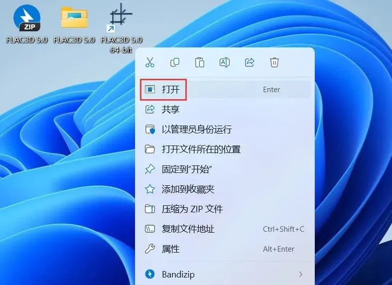 15、回到桌面,右键桌面上的【FLAC3D 5.0软件图标】,点击【打开】