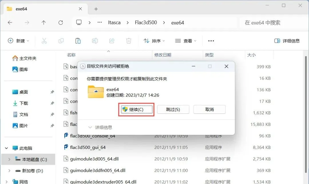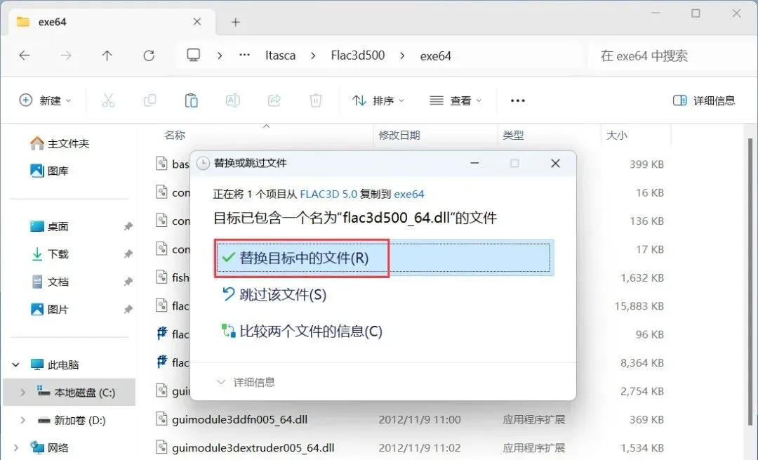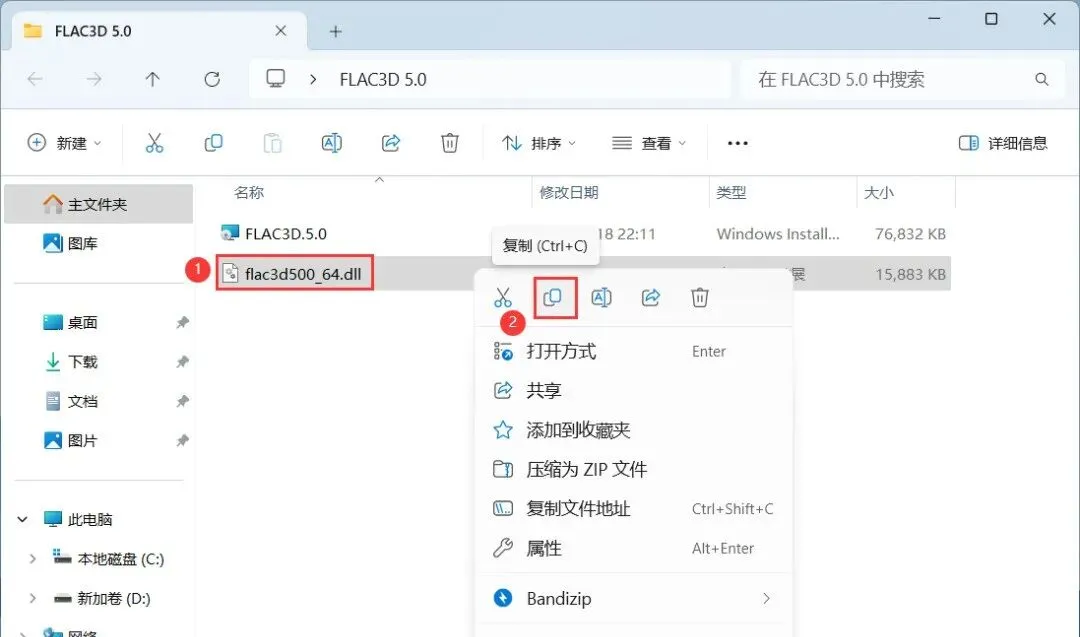 10、回到FLAC3D 5.0文件夹,找到【flac3d600_64.dll】文件,右键点击【复制按钮】
