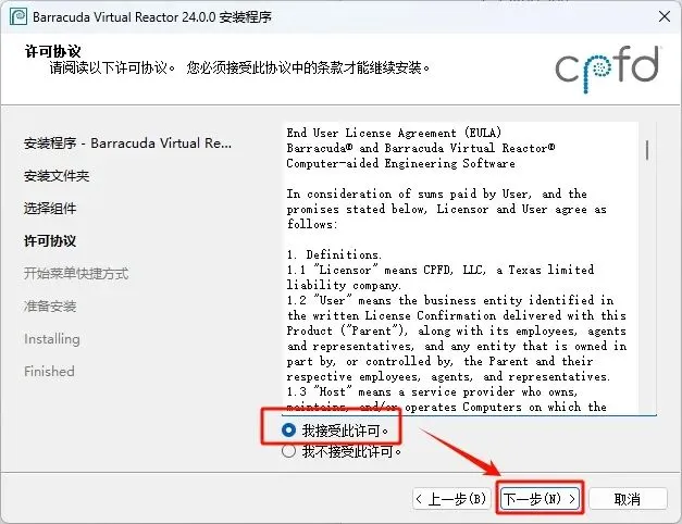 7.选择接受许可,点击下一步