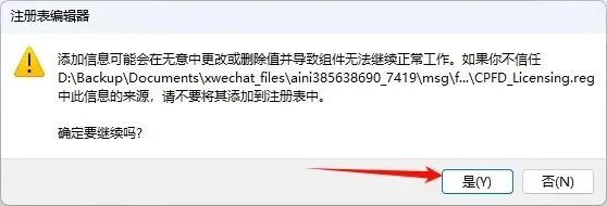 18.双击文件“CPFD_Licensing.reg”并确认将信息添加到Windows注册表。