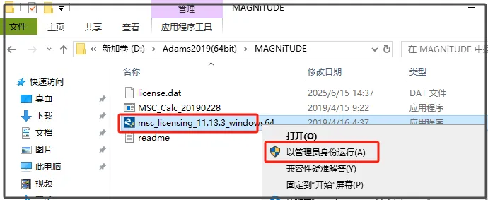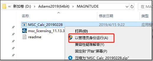第四步:选中【MSC_Calc_20190228】右击,选择【以管理员身份运行】。
