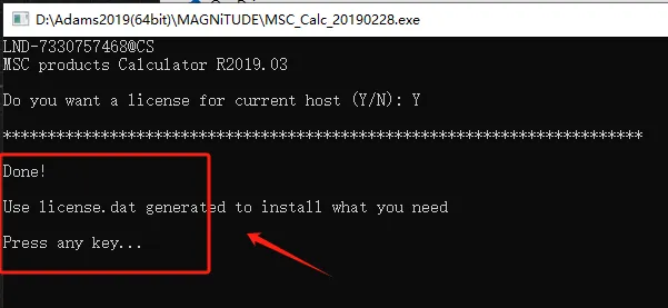 第七步:运行成功后,会在文件夹中,生成一个【license.dat】的文件,如果没有生成,重新运行第四步操作。