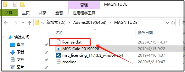 第十三步:点击【Browse】选择安装包解压后的【Adams2019(64bit)】文件夹中【MAGNiTUDE】文件夹下的【license.dat】(即步骤7生成的文件),点击【打开】。