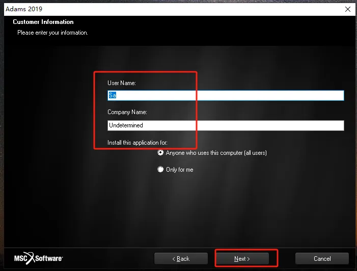 第二十一步:user name和company name随意填写,点【Next】。