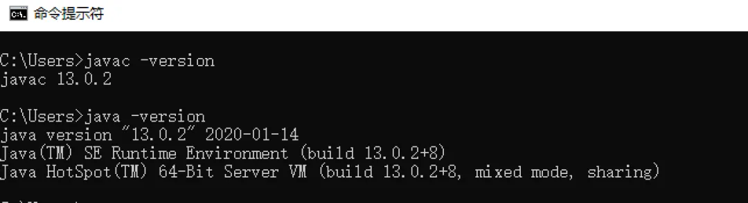2、输入 javac -version,然后再输入 java -version