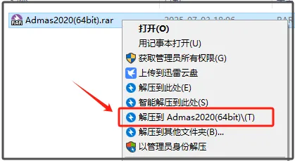 第十九步:返回第二步解压的文件夹,找到【adams_2020_win64】,右击选择【以管理员身份运行】。