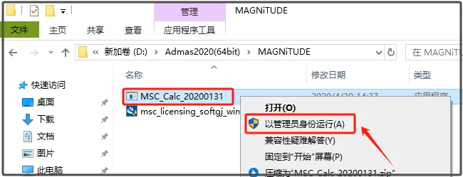 第四步:选中【MSC_Calc_20200131】右击,选择【以管理员身份运行】。