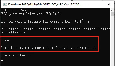 第七步:运行成功后,会在文件夹中,生成一个【license.dat】的文件,如果没有生成,重新运行第四步操作。