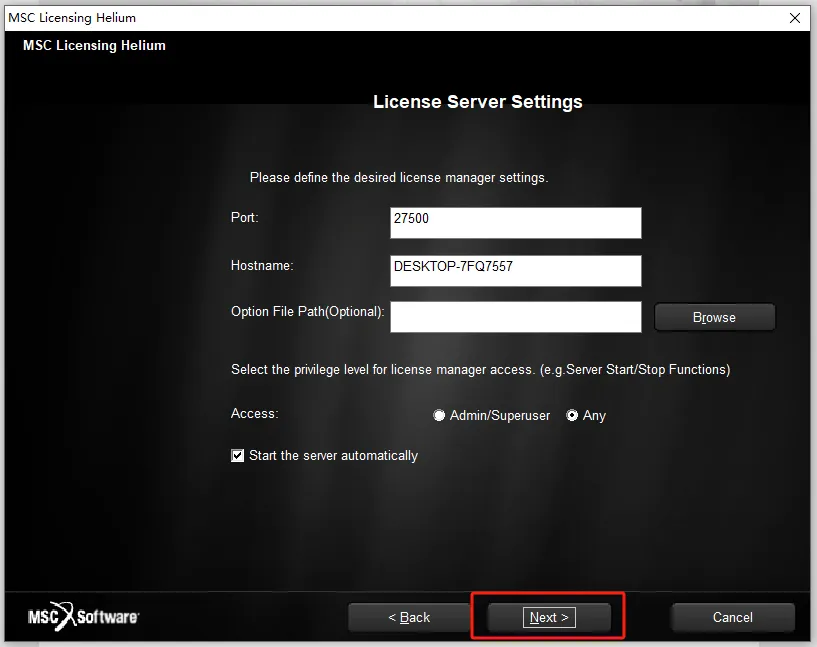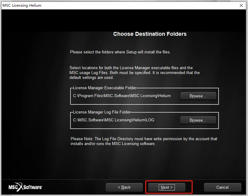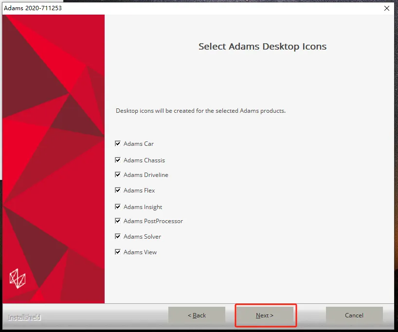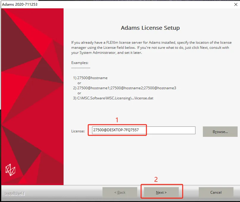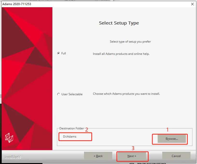 第二十三步:通过【Browse】,将文件安装在【D:\Adams】目录下,然后点【Next】。(此步安装路径一定要改,不可只改盘符,否则可能导致软件不可使用,安装路径中也不要有中文。)