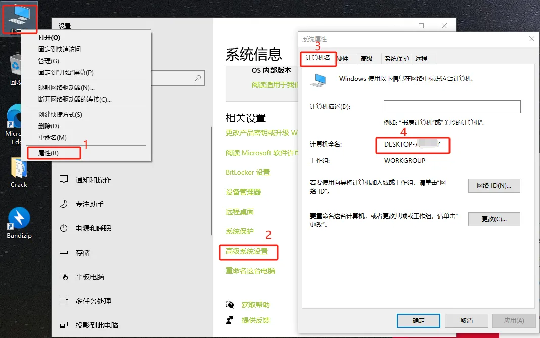附:电脑名称查看方式:此电脑右击,属性,高级系统设置,计算机名,复制即可。