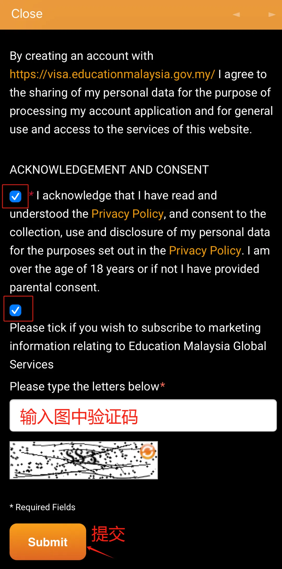 步骤②:填写注册信息提交。(带星号的是必填项,其他的可不填),勾选“确认和同意”条款,并输入随机生成的验证码,然后点击提交。这时可能会跳转邮箱链接进行验证。