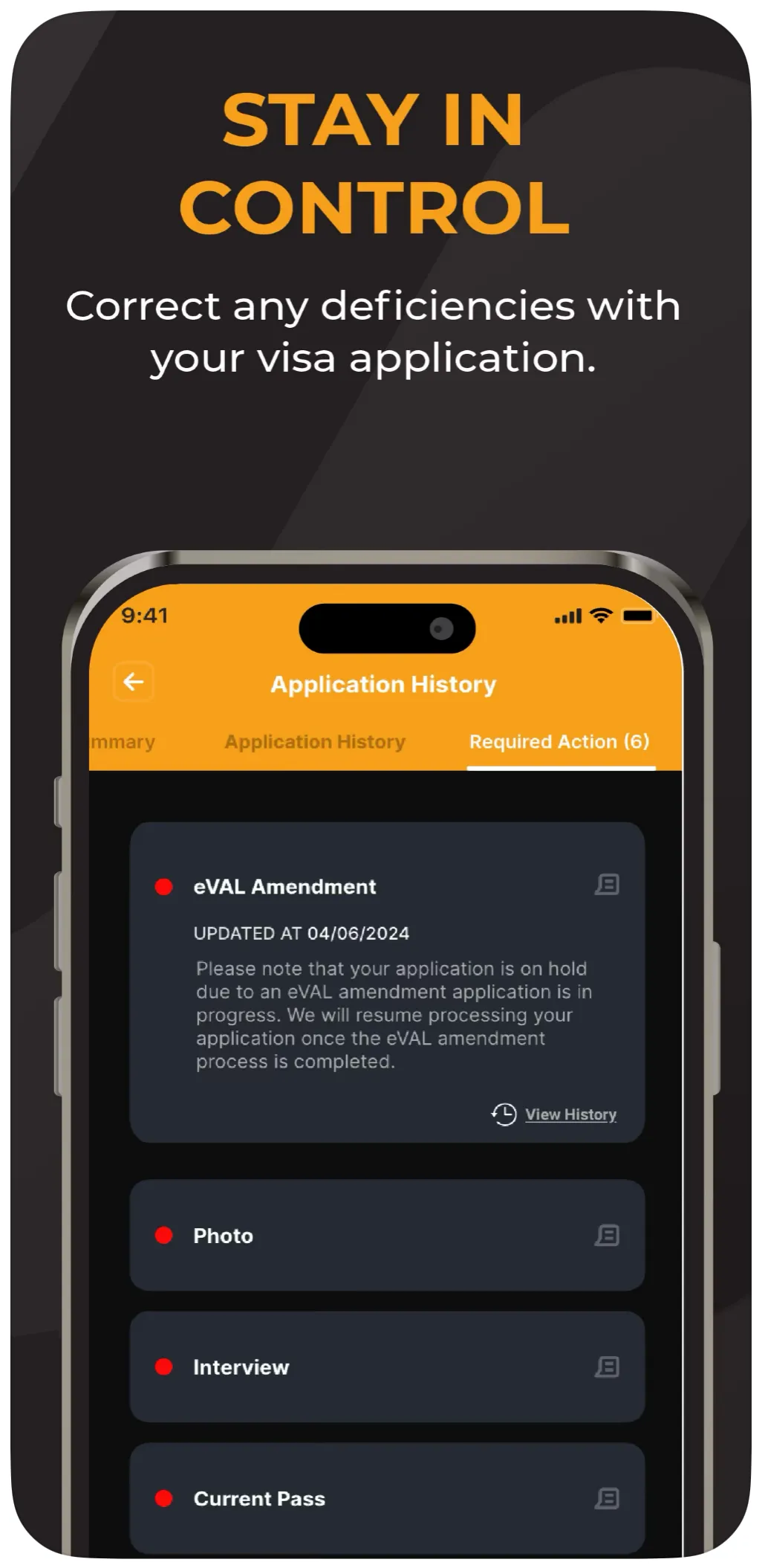 *选择Summary可以查看当前的签证进度,选择History可以查看签证申请的完整历史记录。