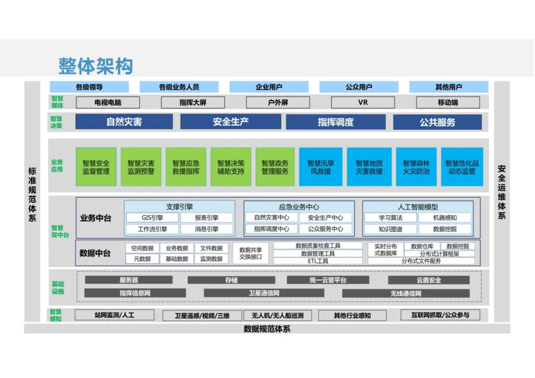 一套完整的智慧应急解决方案,绝非单个软件的开发,而是一个复杂的能力生态系统建设。其顶层设计通常遵循清晰的逻辑架构: