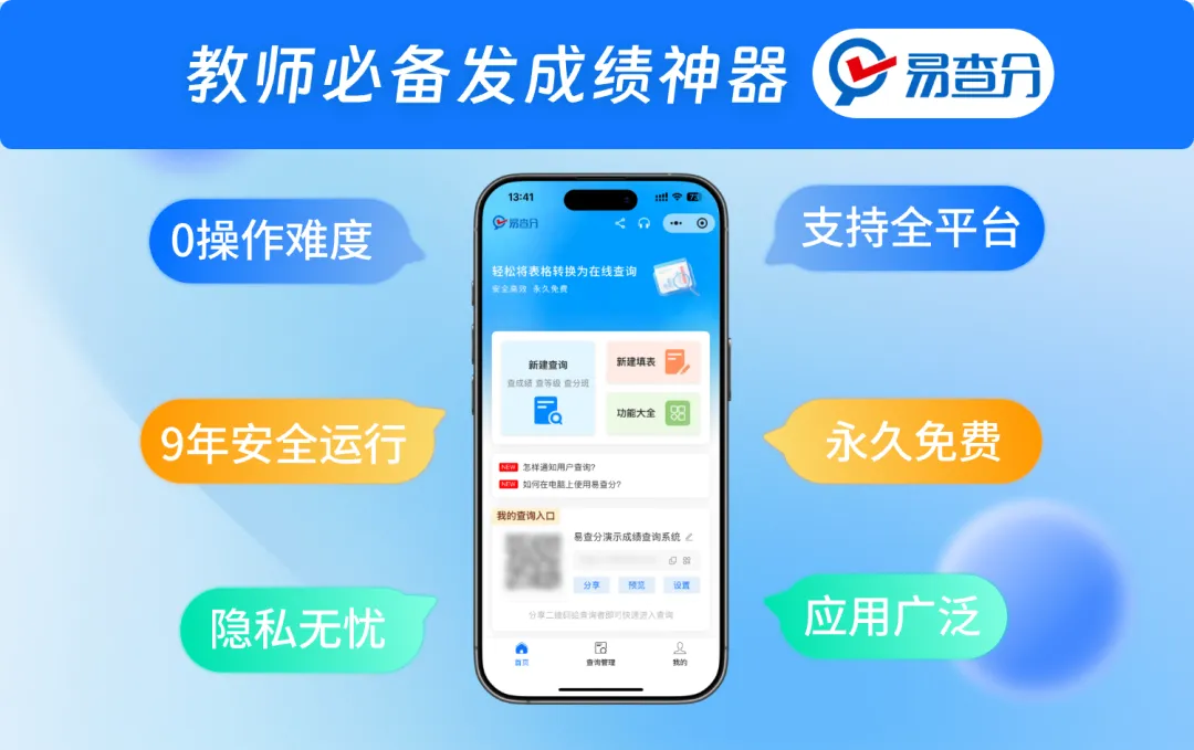 追求全能、安全、长期信赖→ 首选 易查分(小程序/官网)