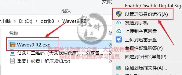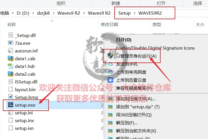 3.双击打开Setup-WAVES9R2文件夹,管理员身份运行setup程序;
