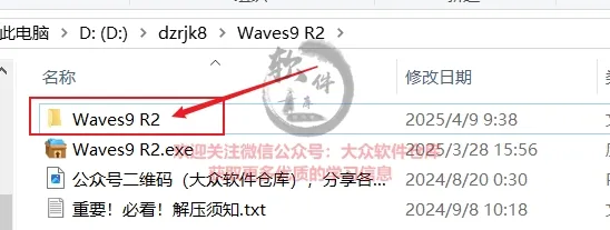 2.双击打开解压出来的Waves9 R2文件夹;