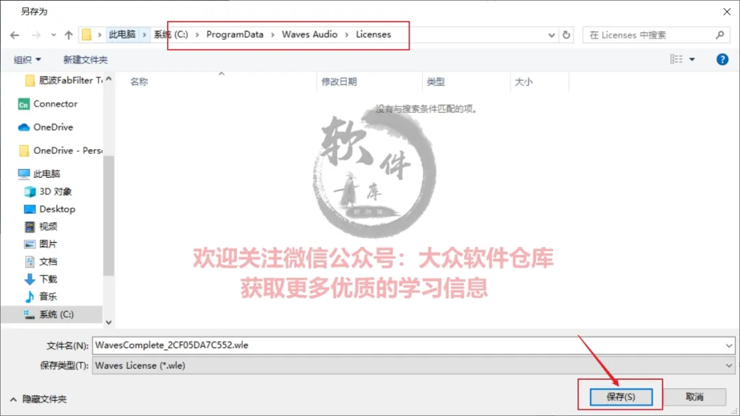 26.将生成的文件存放在C盘的ProgramData/Waves Audio/Licenses文件夹下;