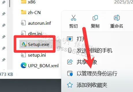 04,找到并选中“Setup.exe”安装程序,点击鼠标右键,点击“以管理员身份运行”