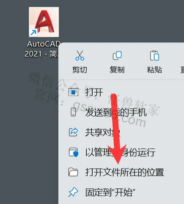 13,在桌面找到并选中AutoCAD软件图标,点击鼠标右键,点击“打开文件所在的位置”
