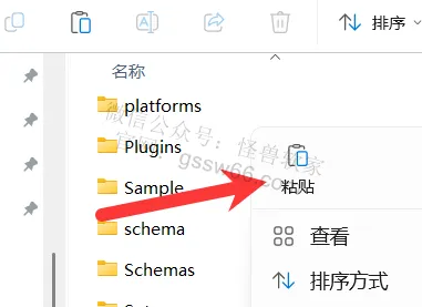 14,在打开的文件夹空白处,点击鼠标右键,点击“粘贴”,或者使用快捷键“Ctrl”+“V”粘贴