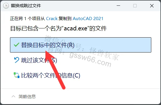 15,点击“替换目标中的文件”