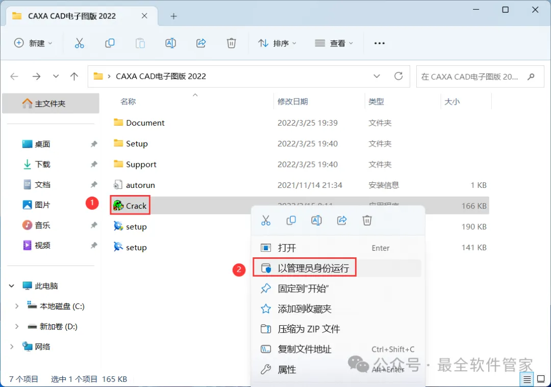 [不限速下载]:免费获取百度网盘不限速下载工具。公众号内回复:不限速[注意事项]:安装前请关闭网络、杀毒软件和防火墙,否则易安装失败。公众号内回复:1[解压软件]:小编用的解压软件是Bandizip,获取Bandizip软件安装包。公众号内回复:21、下载CAXA CAD电子图版 2022软件安装包到电脑上,右键选择【解压到CAXA CAD电子图版 2022\】3、找到【setup】应用程序,右键选择【以管理员身份运行】它6、勾选需要安装的组件,软件默认安装在C盘,可自定义更改软件安装位置,这里小编选择安装在D盘;点击【开始安装】 10、回到CAXA CAD电子图版 2022文件夹,找到【Crack】程序,右键选择【以管理员身份运行】它 11、勾选【图版2022x64(64位)】,再点击【Go】13、回到桌面,右键桌面上的【CAXA CAD电子图版 2022软件图标】,点击【打开】16、以上就是CAXA CAD电子图版 2022软件安装的全过程,要是对你有帮助的话,请为小编点个赞!免责声明:软件资源均来源于网络,仅供用户交流学习与研究使用,版权归属原版权方所有,版权争议与本公众号无关,用户本人下载后不能用作商业或非法用途,否则后果均由用户承担责任;如果您访问和下载此文件,表示您同意只将此软件用于参考、学习而非其他用途,否则一切后果请您自行承担,请于下载后24小时内删除,不允许用于商业用途,否则法律问题自行承担。如果您喜欢该软件,请支持正版软件,购买注册,得到更好的正版服务。