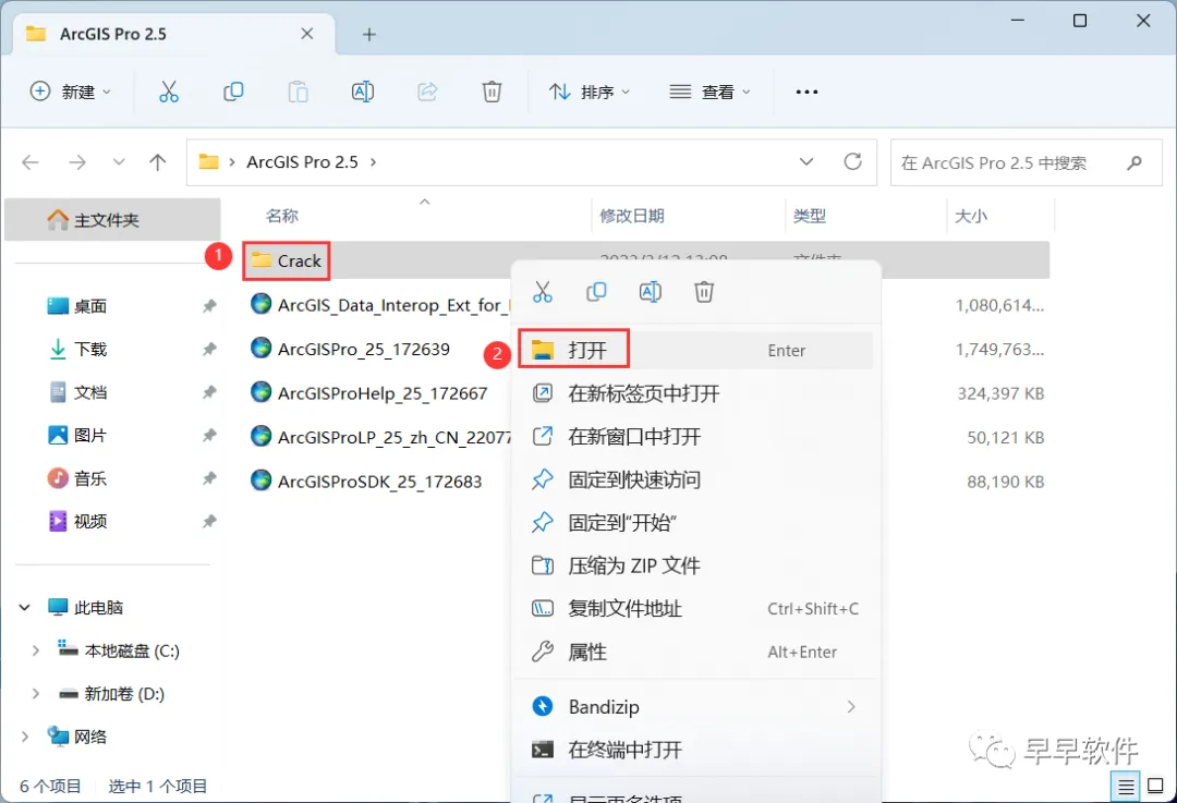 21、回到ArcGIS Pro 2.5文件夹,找到【Crack】文件夹,右键【打开】它