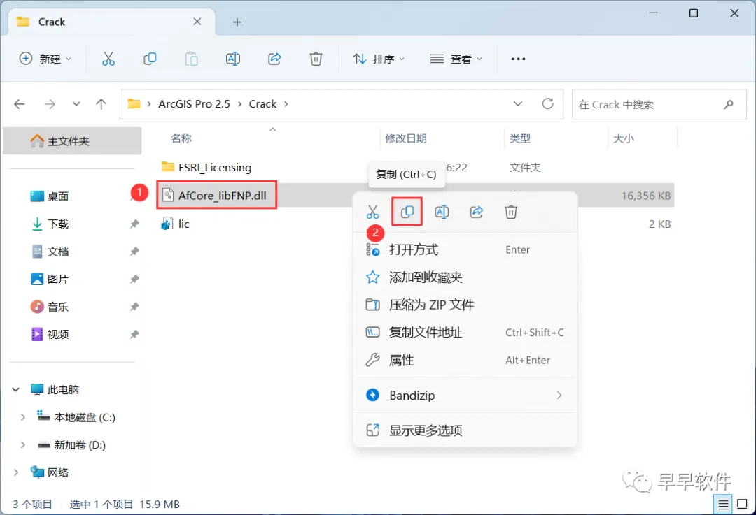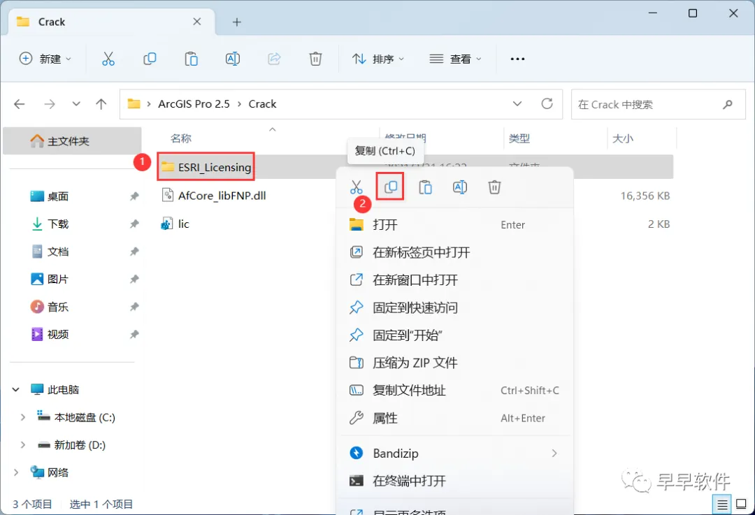30、回到Crack文件夹,找到【ESRI_Licensing】文件夹,再右键点击【复制按钮】