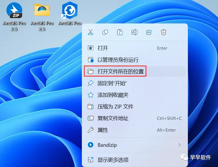 24、右键桌面上的【ArcGIS Pro软件图标】,点击【打开文件所在的位置】